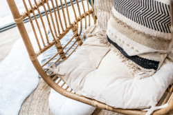 Med sin kombination af tekstur, farve og pasform fungerer hynden som en diskret, men funktionel detalje, der gør siddeoplevelsen mere behagelig uden at gå på kompromis med designets lethed.